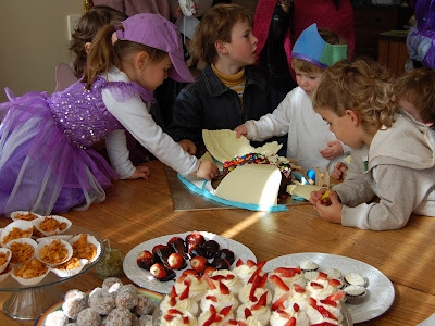 Our little man is three and we had a lovely day celebrating his birth. We sung songs, hokey pokey(his favourite), skip to my Lou, steam train, like a leaf or feather. I told the story of 'Mrs Tree' which is a wonderful steiner(waldolf) story for three to four year olds which involves the child who is the tree.Flynn chose a hard hat as his birthday cake which I made more exciting by making it into a pinata, but as you can see by the pictures it was hard to break the white chocolate layer we had to call in big brother Jim to help hammer it. before we sing happy birthday the birthday boy holding a candle, walks to his place at the table while everyone sings 'the birthday song'